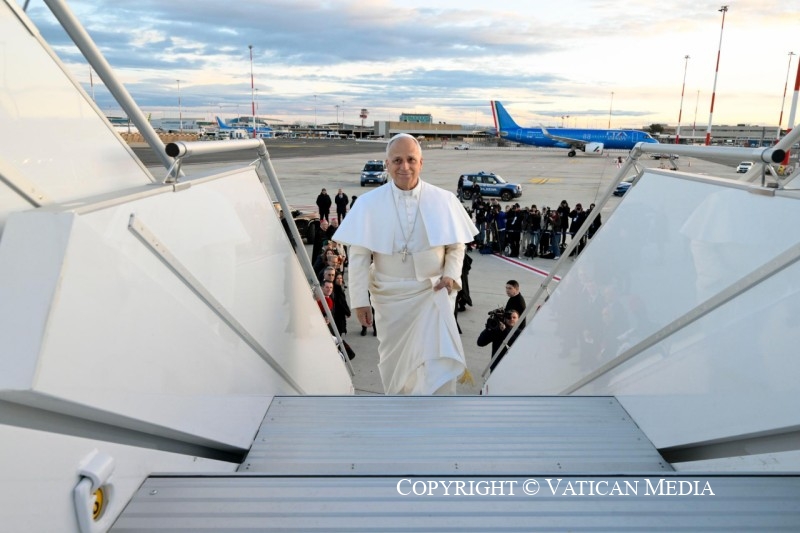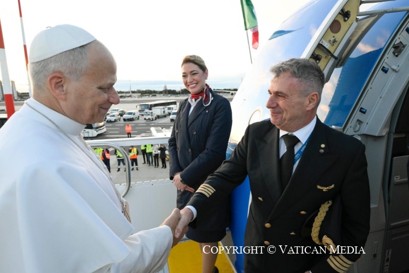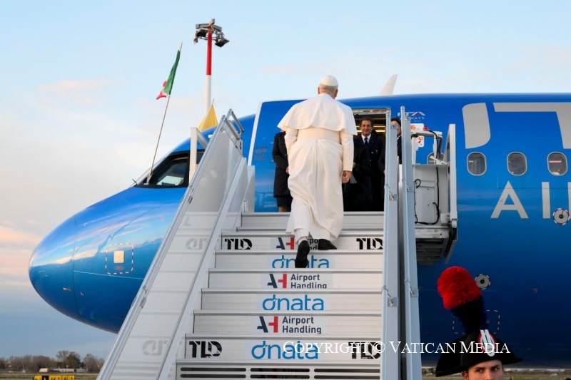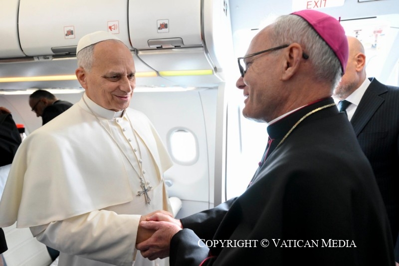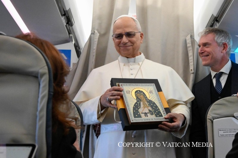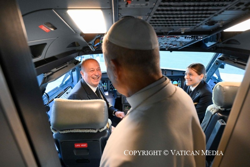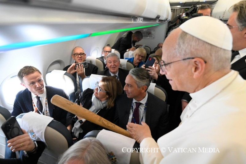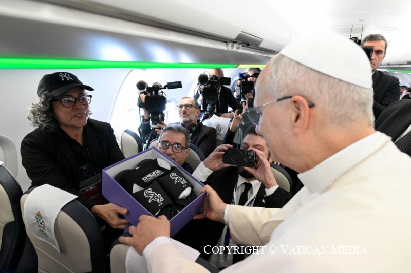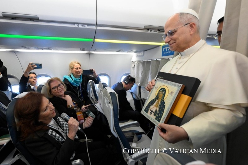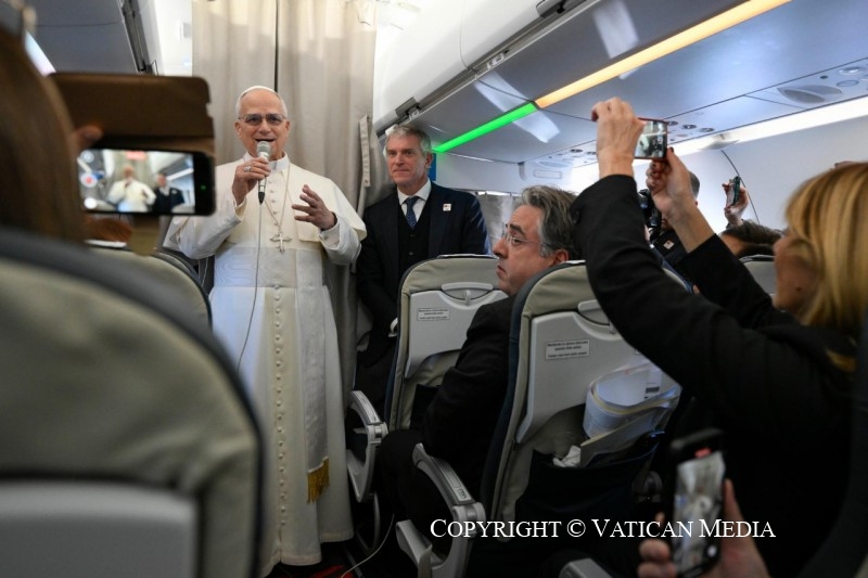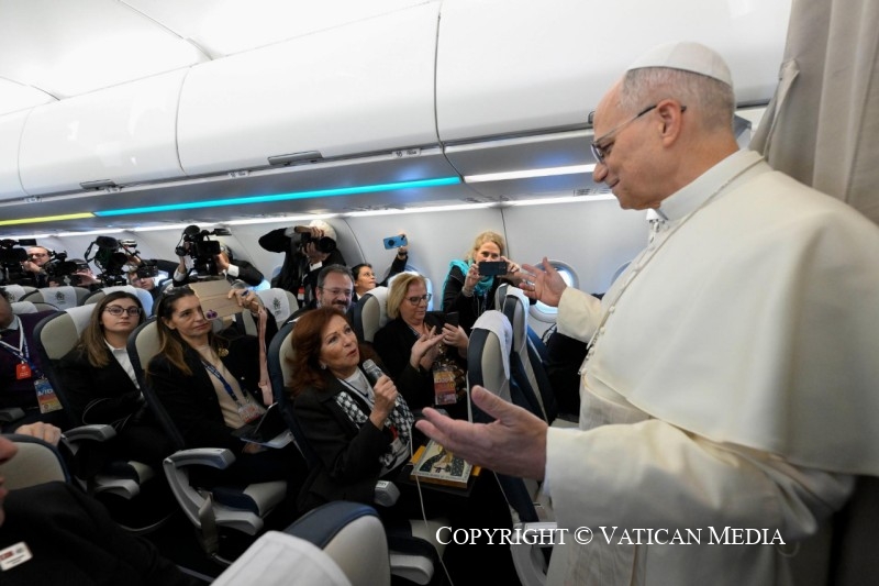 Viaggio Apostolico in Türkiye e in Libano: Saluto ai giornalisti durante il volo Roma-Ankara