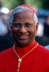 | Cardinal D. Simon Lourdusamy, Prefect emeritus of the Congregation for Oriental Churches, was born on 5 February 1924 in Kalleri, archdiocese of Pondicherry and Cuddalore (India). He was ordained a priest on 21 December 1951. Having acquired a profound scientific formation at the Loyola College of Madras, he then earned a doctorate in canon law at the Pontifical Urban University of Rome in 1956. Following ordination, he carried out a variety of services which provided for a rich and multiple experience in his ministry. He was diocesan chancellor and secretary to the Archbishop of Pondicherry; editor of the weekly catholic magazine Sava Viaby; director of the Catholic DoctorsÂ’ Guild, the Catholic Medical StudentsÂ’ Guild, the Newman Associations, the catholic university students union and of other ecclesiastical organizations. On 2 July 1962 he was nominated titular Bishop of Sozusa in Libya and Auxiliary Bishop of Bangalore, He received episcopal ordination on 22 August 1962. On 9 November 1964 he was named titular Archbishop of Filippi and due to the health of the Archbishop Thomas Pothacamury, he was also named Coadjutor Archbishop of Bangalore. He was president of the National Liturgical Commission for India and was creator of the National Liturgical and Catechetical Centre of Bangalore. He was also a member of the BishopsÂ’ Catechetics Commission, delegate to the first ordinary assembly of the Synod of Bishops in 1967, representative of the Bishops of India at the Pan-Asiatic Catechetical-Liturgical Conference of Manila (1967) of which he was also vice-president and president of the liturgy section. Prior to the International Eucharistic Congress of Bogota he was also invited to participate as a member of the catechetic study week in Medellín, Colombia. On 11 January 1968, he became Archbishop of Bangalore. He was then called to Rome on 2 March 1971 as adjunct secretary of the Congregation for Evangelization of Peoples. On 24 February 1973 he became Secretary of the same dicastery and also president of the Pontifical Missionary Works and the Vice-Grand Chancellor of the Pontifical Urban University. Prefect of the Congregation for Oriental Churches from 1985 until 1991 (resigned due to health). Created and proclaimed Cardinal by John Paul II in the consistory of 15 May 1985. of the title of St. Mary of Grace alle Fornaci fuori Porta Cavalleggeri (deaconry raised pro hac vice to presbyteral title on 29 January 1996).