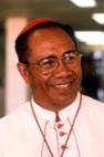 | Cardinal Pio Taofinuu, Archbishop emeritus of Samoa-Apia, (Oceania) was born of indigenous parents on 8 December 1923 in Falealupo, on the island of Savaii (Western Samoa). After his early studies at the minor seminary of Moatioa, he went to the seminary of Wallis Island and concluded his preparation of philosophy and theology at the Marist Fathers of Green Meadows, New Zealand. Returning to his native island, he was ordained a priest on 8 December 1954. A few years later he entered the Society of Mary and did his noviatiate in New York. On his return to Western Samoa in 1964 he was nominated vicar of Bishop Pearce, apostolic vicar of Samoa and Tokelau and when in 1966 the diocese of Apia was erected he was nominated vicar general. On 11 January 1968 he was named Bishop of Apia (in 1975 the diocese assumed the name Samoa and Tokelau), thus becoming the first Polynesian Bishop in the history of the Church. In this diocese, with a territory that covers: Western Samoa, American Samoa and the Tokelau Islands, his activity has been non-stop, creating numerous secondary schools and institutions of professional formation, demonstrating dedication to the apostolate and in serving the poor and elderly, reorganizing the seminary and founded a theology institute for the formation of deacons and catechists. With the intent to promote economic independence for those living in the diocese, he set aside 3,000 acres of the dioceses property for the construction of a large cheese factory. It was from Apia that Pope Paul VI made his missionary appeal to the world on 29 November 1970, during his trip to the Far East, and, as a mark of appreciation for his honor, Bishop Taofinuu led a group of 24 Samoan pilgrims to Rome for Mission Sunday 1971. Created and proclaimed Cardinal by Paul VI in the Consistory of 5 March 1973, of the Title of St. Onofrio (St. Humphrey). Archbishop of Samoa-Apia and Tokelau, 10 September 1982 (title of see changed to Samoa-Apia on 26 June 1992). President Delegate at the Special Assembly for Oceania of the Synod of Bishops, 22 November - 12 December 1998. 16 November 2002, Archbishop emeritus of Samoa-Apia. Cardinal Pio Taofinuu died on 19 January 2006. |