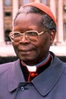 | Cardinal Hyacinthe Thiandoum, Archbishop emeritus of Dakar (Senegal), was born on 2 February 1921 in Poponguine, archdiocese of Dakar (Senegal). His father was a catechist. After finishing his secondary studies, he entered the regional seminary of Dakar and was ordained a priest on 18 April 1949, did parish work for two years and then came to Rome for licentiates in philosophy and sociology at the Pontifical Gregorian University. He returned to Senegal in 1953 and, after working as a chaplain to Catholic Action groups, became parish priest of the Dakar cathedral in 1960 and Vicar General the following year. On 24 February 1962 he was elected Archbishop of Dakar. He received episcopal ordination on 20 May 1962, succeeding Archbishop Marcel Lefebvre, C.S.Sp. He took part in Vatican Council II (1962-1965). He was president until 1987 of the BishopsÂ’ Conference of Senegal-Mauretania; he has been the Vice-president of the Episcopal Pan-African Symposium. Has been a member of the Council of the General Secretariat of the Synod of Bishops; President Delegate of the 4th General Assembly of the Synod of Bishops (1977); Relator of the 7th General Assembly of the Synod of Bishops (1987); and General Relator of the Special Assembly for Africa of the Synod of Bishops (1994). Created and proclaimed Cardinal by Paul VI in the Consistory of 24 May 1976, of the Title of S. Maria del Popolo. Archbishop emeritus of Dakar, 16 June 2000. Cardinal Hyacinthe Thiandoum died on 18 May 2004. |