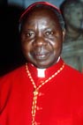 | Cardinal Emmanuel Wamala, Archbishop emeritus of Kampala, (Uganda), was born on 15 December 1926 at Kamaggwa, in the parish of Lwaggulwe in the Diocese of Masaka. His father, Cosma Kyamcra and his mother, Theresa Nnamayanja, were blessed by the birth of 10 children, two of whom died while still babies. Of the eight remaining children (five boys and three girls) two became priests, one a religious and the others married. He went to the elementary school of Kalisizo and Bakira for four years, before he entered Bukalasa Minor Seminary in 1942. After seven years in Bukalasa, he attended the National Major Seminary of Katigondo from 1949 to 1955. He gained pastoral experience in Kabula parish in the Masaka Diocese. In September 1956, he was sent to Rome for further study at the Pontifical Urban University, where he obtained a licentiate in theology. He was ordained priest on 21 December 1957, in Rome. After his ordination, Archbishop Wamala continued his studies at the Gregorian University in Rome (1958-1960) earning a licentiate in social sciences. He returned to Uganda in 1960. For two years after returning to Uganda in 1960, Emmanuel Wamala worked at the parish of Villa Maria which then functioned as the Diocesan School Supervisor in the Diocese of Masaka. From 1962 to 1964 he took a course in pedagogy at Makerere University, Kampala. After gaining a diploma in pedagogy at Makerere University in 1964 he was sent to teach at Bukalasa Minor Seminary until 1968, when he was appointed chaplain of Makerere University. He held this post until 1974. In 1974 he was named Vicar General of Masaka and at the same time for a certain period, parish priest of Nkoni (1975-1977) and of Kimaanya (1977-1979). After his appointment as Bishop of Kiyinda-Mityana on 17 July 1981, on 22 November 1981 he was ordained by Cardinal Emmanuel Nsubuga. On 21 June 1988 he was promoted to the rank of Coadjutor Bishop of Kampala. On 8 February 1990, he succeeded Cardinal Nsubuga. Archbishop Emmanuel Wamala has been President of the Episcopal Conference of Uganda (1986-1994). He has also been President of the Uganda Joint Christian Council. Archbishop Wamala became the first Rector of the New Uganda Martyrs University, officially opened on 18 October 1993. Archbishop emeritus of Kampala, 19 August 2006. Created and proclaimed Cardinal by John Paul II in the consistory of 26 November 1994, of the Title of S. Ugo (St. Hugh).