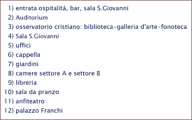 - servizio bar e ristorante (buoni pasti da acquistare presso la Direzione della Cittadella Pro Civitate Christiana).